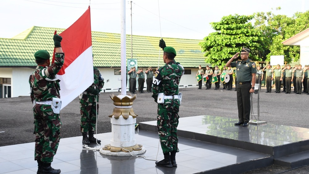 PALEMBANG, KORANPALPRES.COM - Segenap Prajurit dan PNS Korem Gapo mengikuti upacara bendera 17-an Bulan Juni tahun 2025, mengobarkan semangat nasionalisme, cinta tanah air, jiwa patriotisme serta memperkokoh persatuan dan kesatuan bangsa, Selasa 17 Juni 2025.