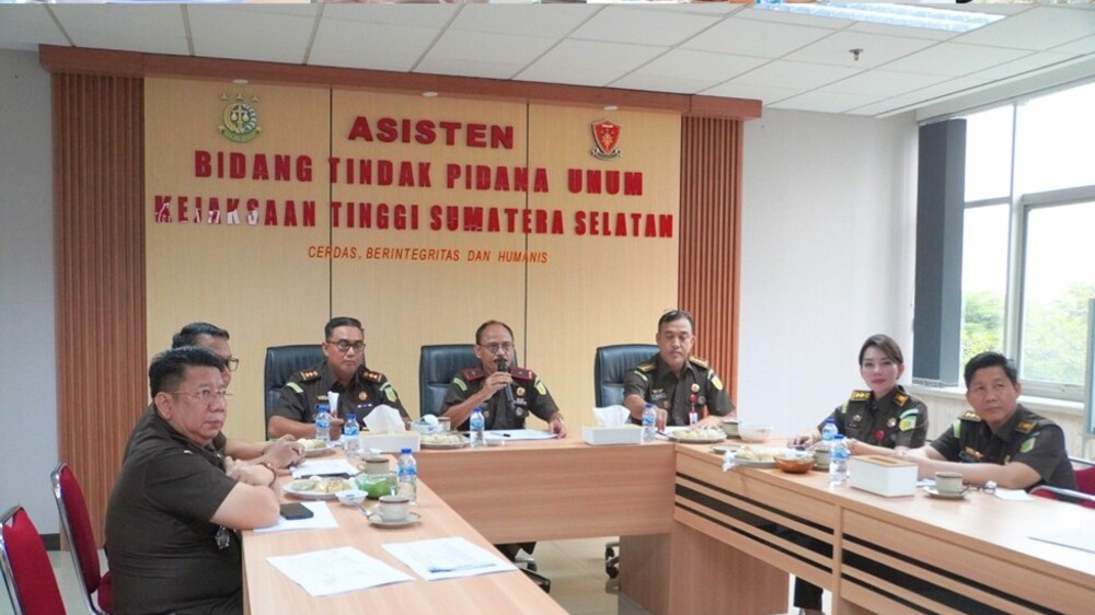 Wakajati Sumsel didampingi Asisten Bidang Tindak Pidana Umum Wahyudi, S.H., M.Hum., Koordinator, dan para Kasi pada Bidang Tindak Pidana Umum Kejaksaan Tinggi Sumatera Selatan.