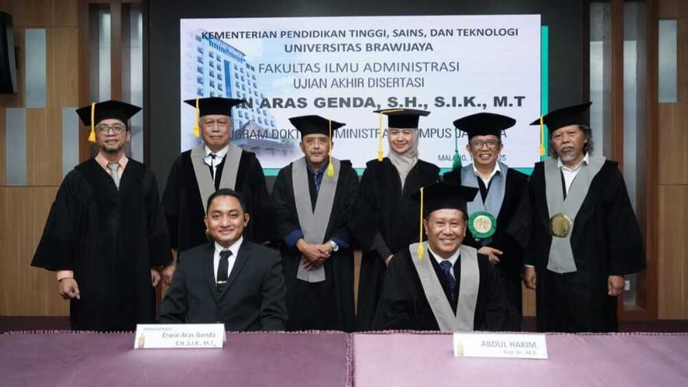 PALEMBANG, KORANPALPRES.COM - Prestasi membanggakan kembali ditorehkan Perwira Polda Sumsel, AKBP Dr. Erwin Aras Genda, S.I.K., S.H., M.T secara resmi menyandang gelar Doktor Ilmu Administrasi.