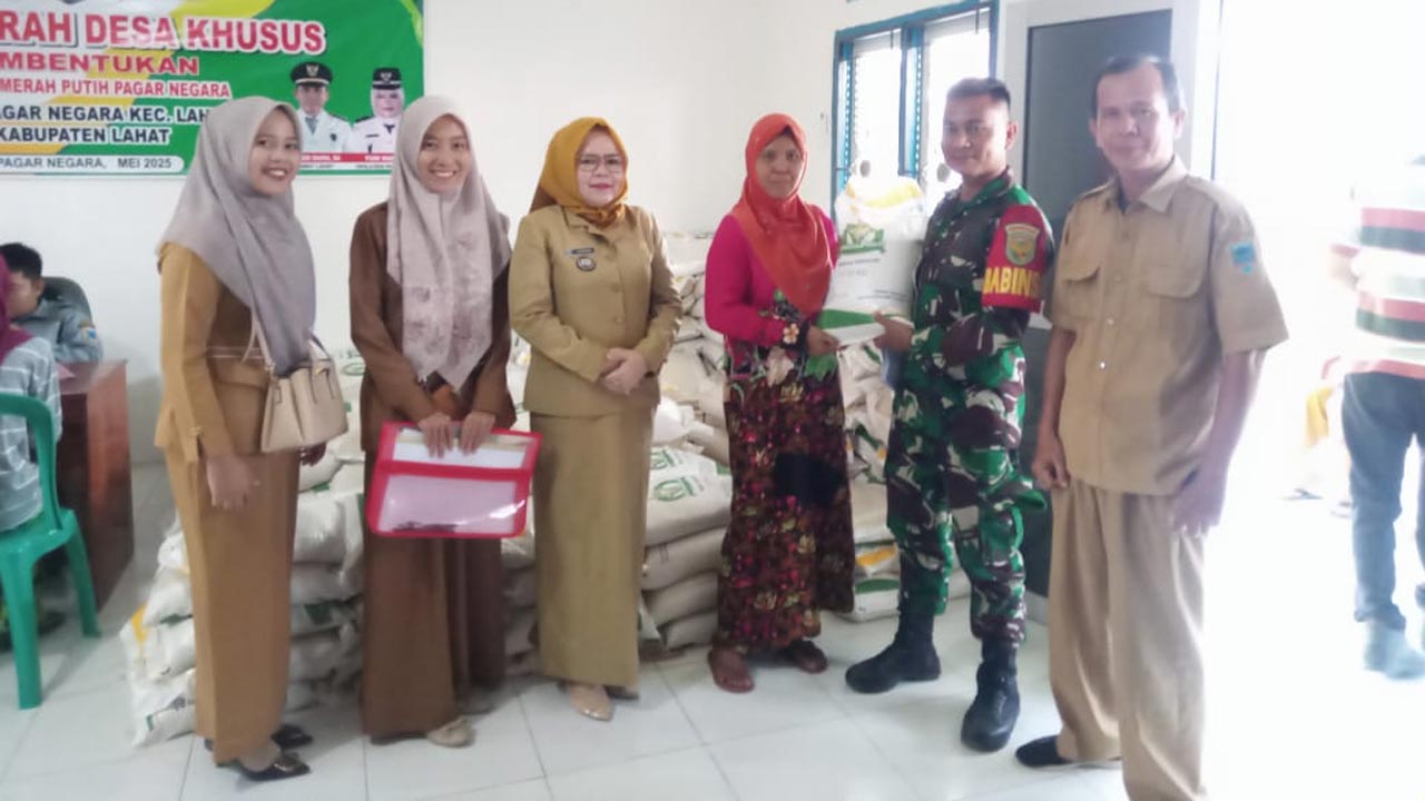 LAHAT, KORANPALPRES.COM - Pemerintah Desa (Pemdes) Pagar Negara, Kecamatan Kota Lahat, Kabupaten Lahat mendistribusikan bantuan beras dari Badan urusan logistik (Bulog) sebanyak 336 karung kepada warga kurang mampu.