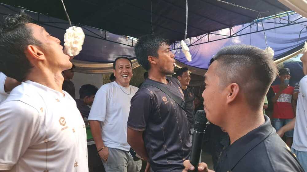 Hal ini untuk mengikuti perlombaan makan kerupuk dan biliar yang dirayakan bersama dengan warga setempat.