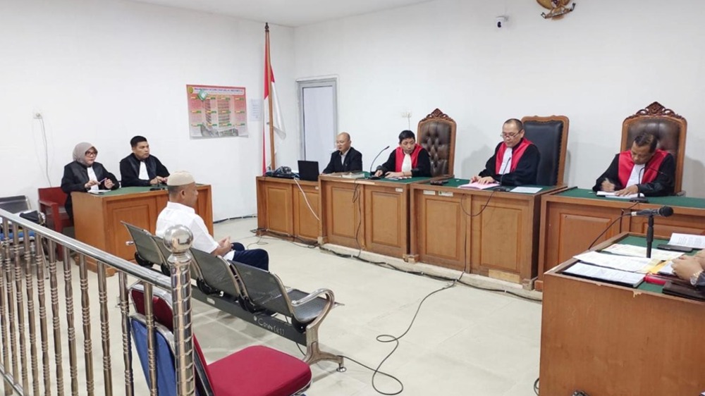 Dalam perkara dugaan tindak pidana korupsi kegiatan fiktif Pembuatan Peta Desa Tahun Anggaran 2023 dengan agenda pembacaan eksepsi dari terdakwa DE, Senin 8 September 2025.