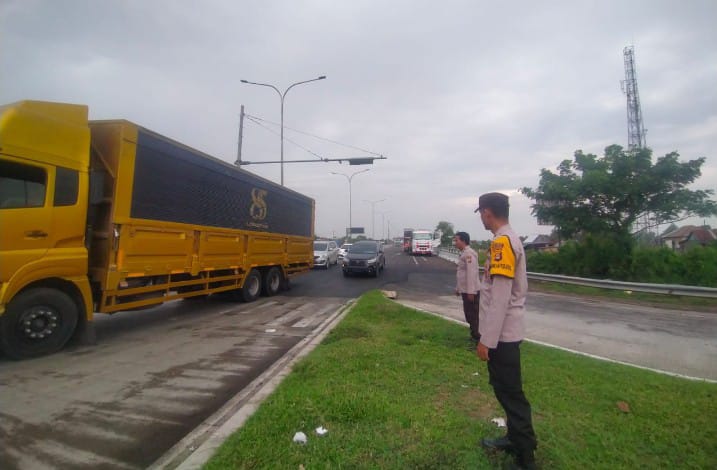 Polsek Pemulutan Polres Ogan Ilir turun langsung melaksanakan kegiatan Patroli untuk mengantisipasi pungli di pintu Tol Keramasan.-koranpalpres.com-
