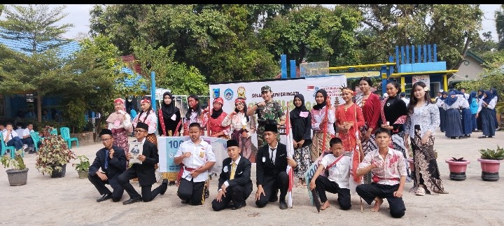 HARI PAHLAWAN : Tampak siswa dan siswi SMPN 2 Lahat mengenakan pakaian ala pejuang, memperingati Hari Pahlawan 10 November-SMPN 2 Lahat/koranpalpres.com-