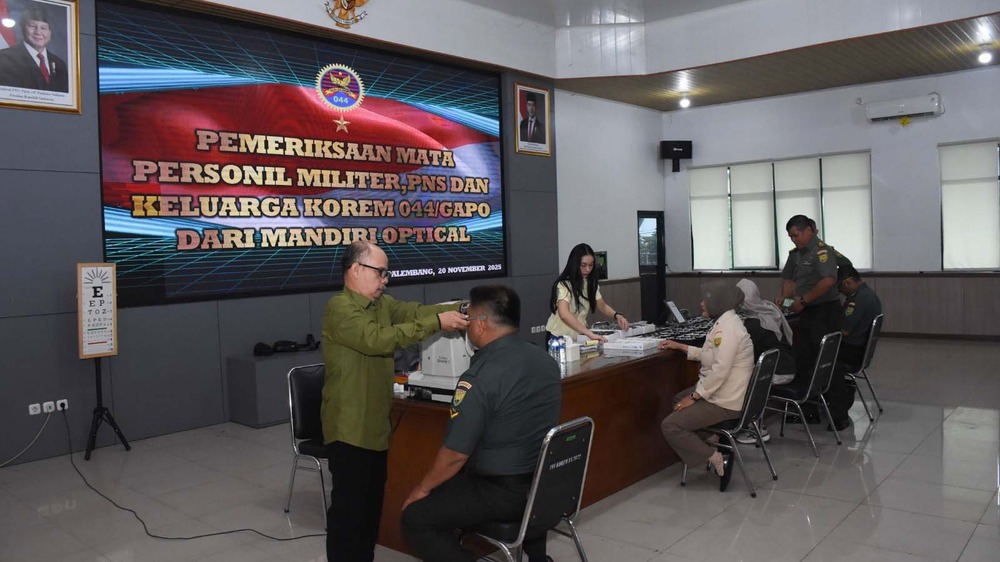 PALEMBANG, KORANPALPRES.COM - Dalam upaya menjaga kondisi kesehatan prajurit, PNS, serta Persit, Korem Garuda Dempo (Gapo) menggelar kegiatan pemeriksaan kesehatan mata.