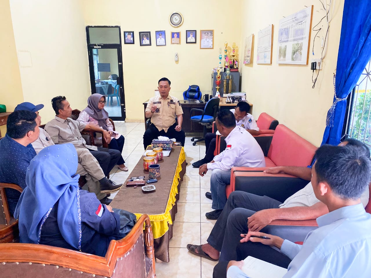 KOORDINASI : Camat Muara Payang, Anthoni Hakman SE MM tengah berkoordinasi dengan kades, di ruang kerja kecamatan-Kecamatan Muara Payang/koranpalpres.com-